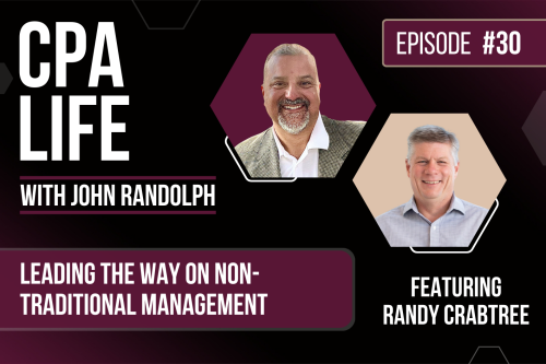 John Randolph finishes his conversation with Accounting Today Top 100 influencer Randy Crabtree on Episode 30 of CPA Life, where they discuss non-traditional leadership in remote, but also in-office culture, the importance of building relationships, and of making your people understand you care about them as human beings. They both delve into the financial advantage imparted by low turnover due to healthy employee work-life balance and the power of saying “no.” They round out their chat by discussing the benefits to firm leaders of letting others do the things you do best, while leaders stay in their lanes, out of the way.