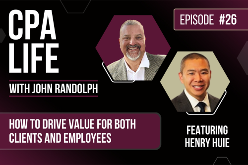 Episode 26 is the second of a two part episode of CPA Life, and Henry Huie rejoins John Randolph to talk about his new firm and its subscription model where clients pay for ongoing advice rather than billable hours. A focus on building deeper client relationships puts the value in “value billing,” and empowers clients to ask for the help they need without worrying about fees. Further, by leveraging technology, Henry’s ideas represent a way for firms to beat the staffing shortage as a job in accounting with fewer hours, better pay and more meaningful relationships is sure to attract far more talent than the same old, legacy firm attitude.
